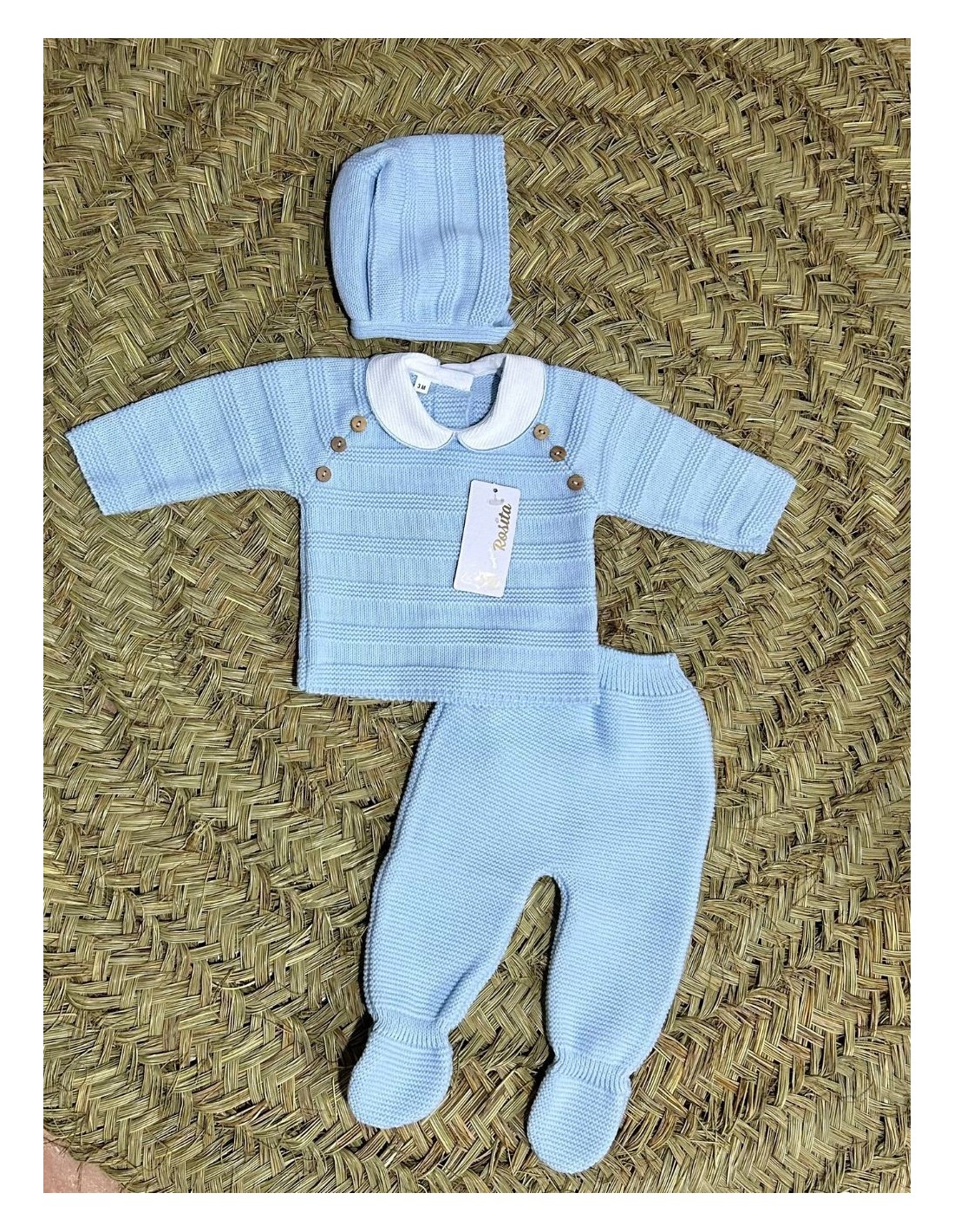 Conjunto de lana de merino dos piezas chaleco con maxi cuello y ranita ( marca solita) 100% algodón