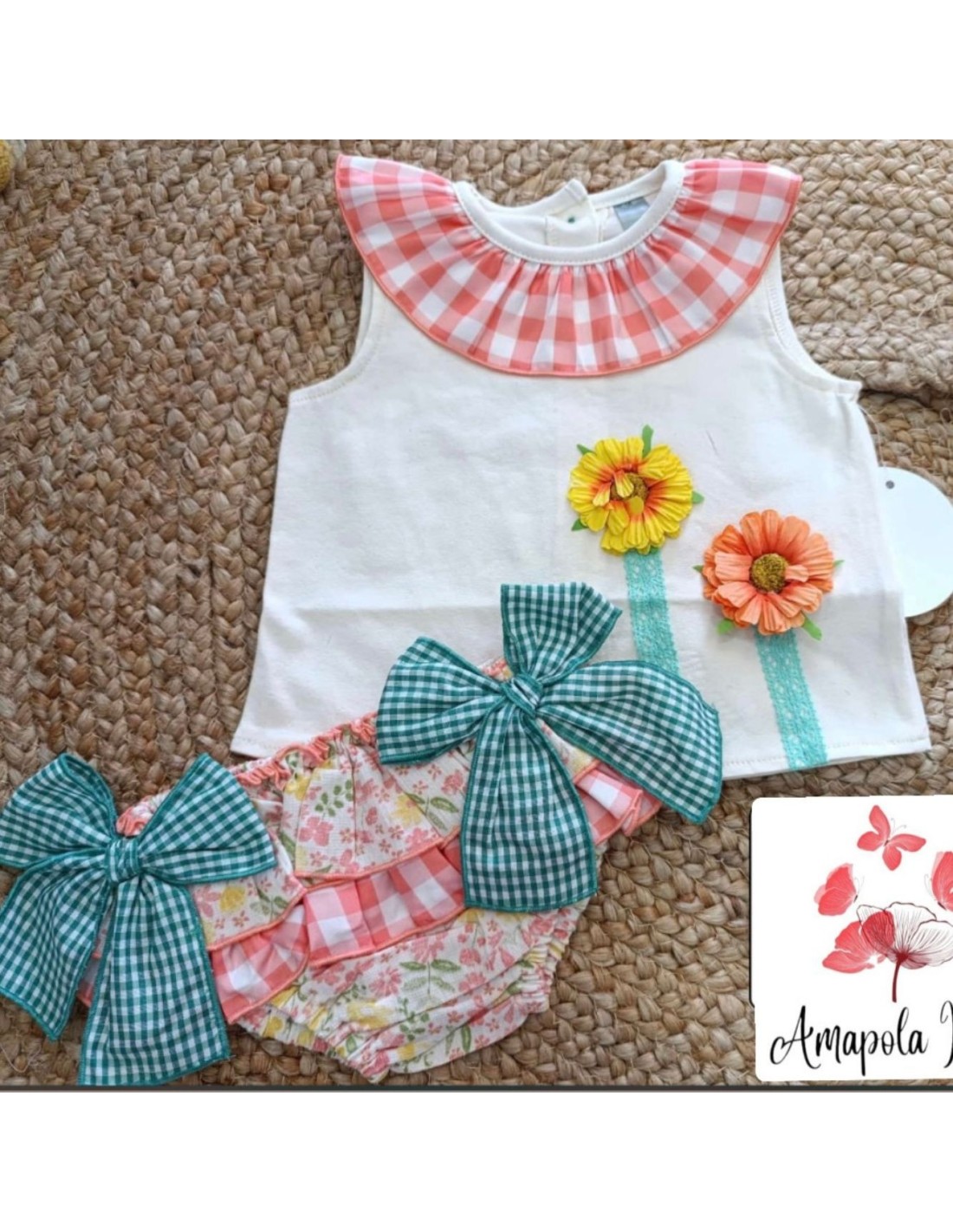 Pelele con cuello con cuadro vichy es de bambula lleva botones de madera 100% algodón ( marca popys)