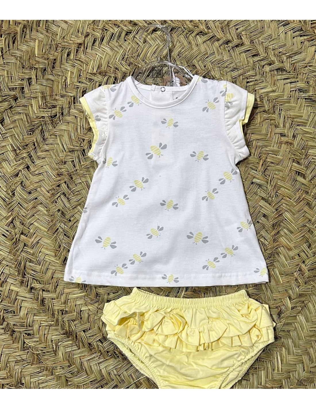 Vestido de rayas azulón con lazo rosa en la espalda super frequito