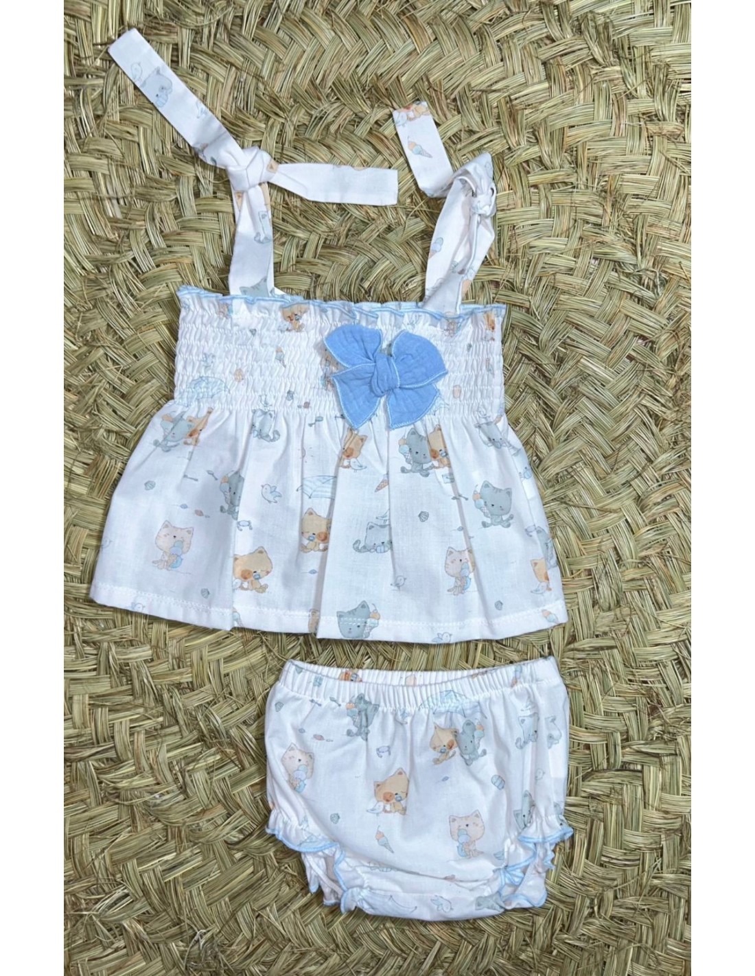 Pelele de bambula con botones de madera y maxi cuello en azulón
