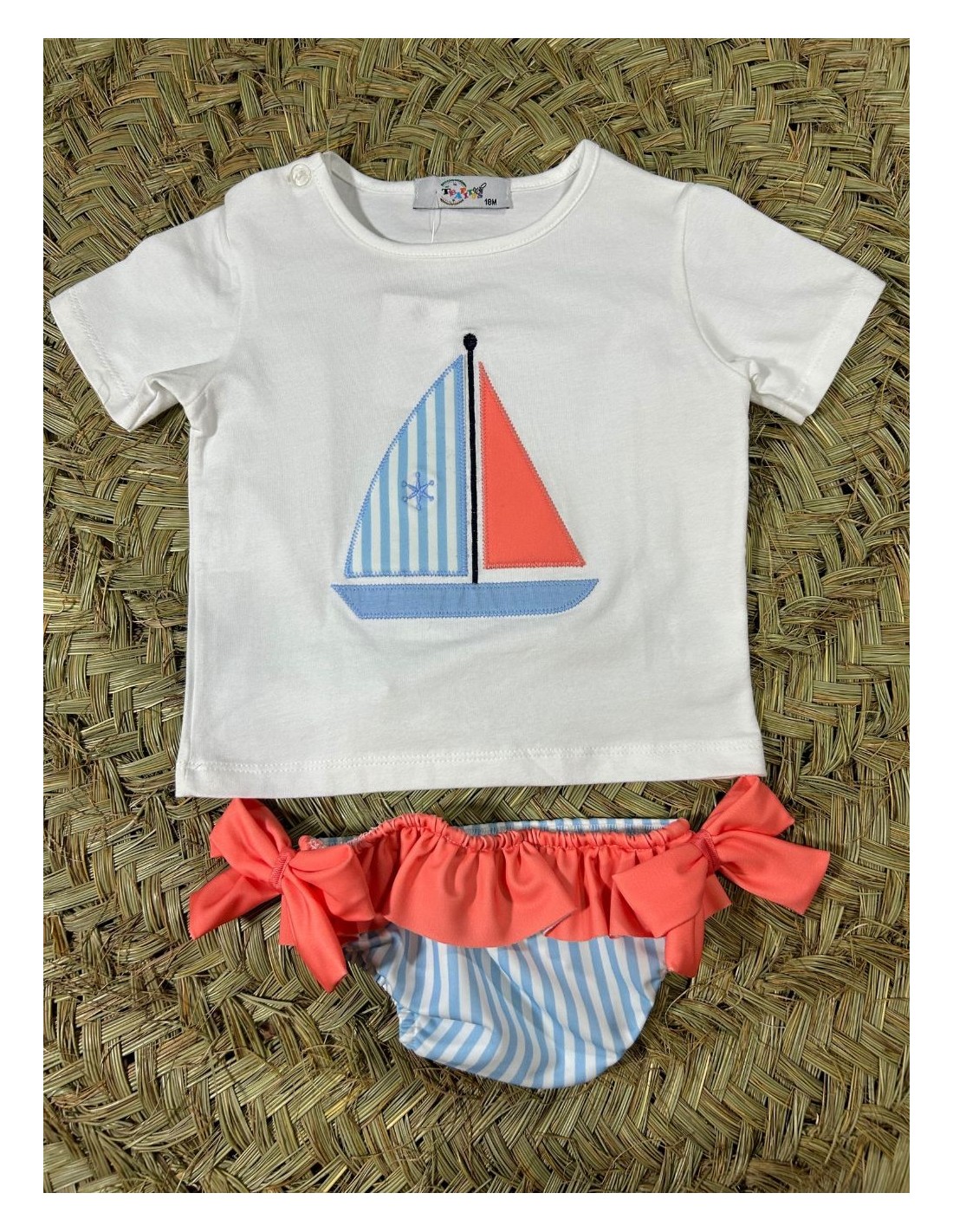 Conjunto compuesto por camiseta de abejas y braguitas con volantes