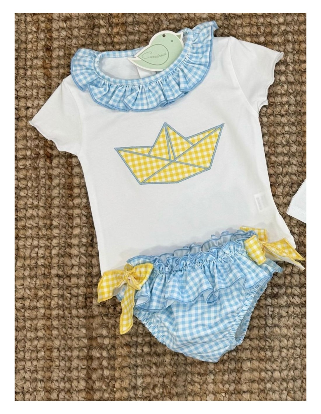 Este conjunto veraniego incluye un bañador cómodo y una camiseta ligera a juego, perfectos para los días de playa o piscina. La camiseta de manga corta protege del sol sin agobiar. Con estampados divertidos y tejidos suaves de secado rápido, es la elección ideal para disfrutar del verano con estilo y libertad de movimiento.
