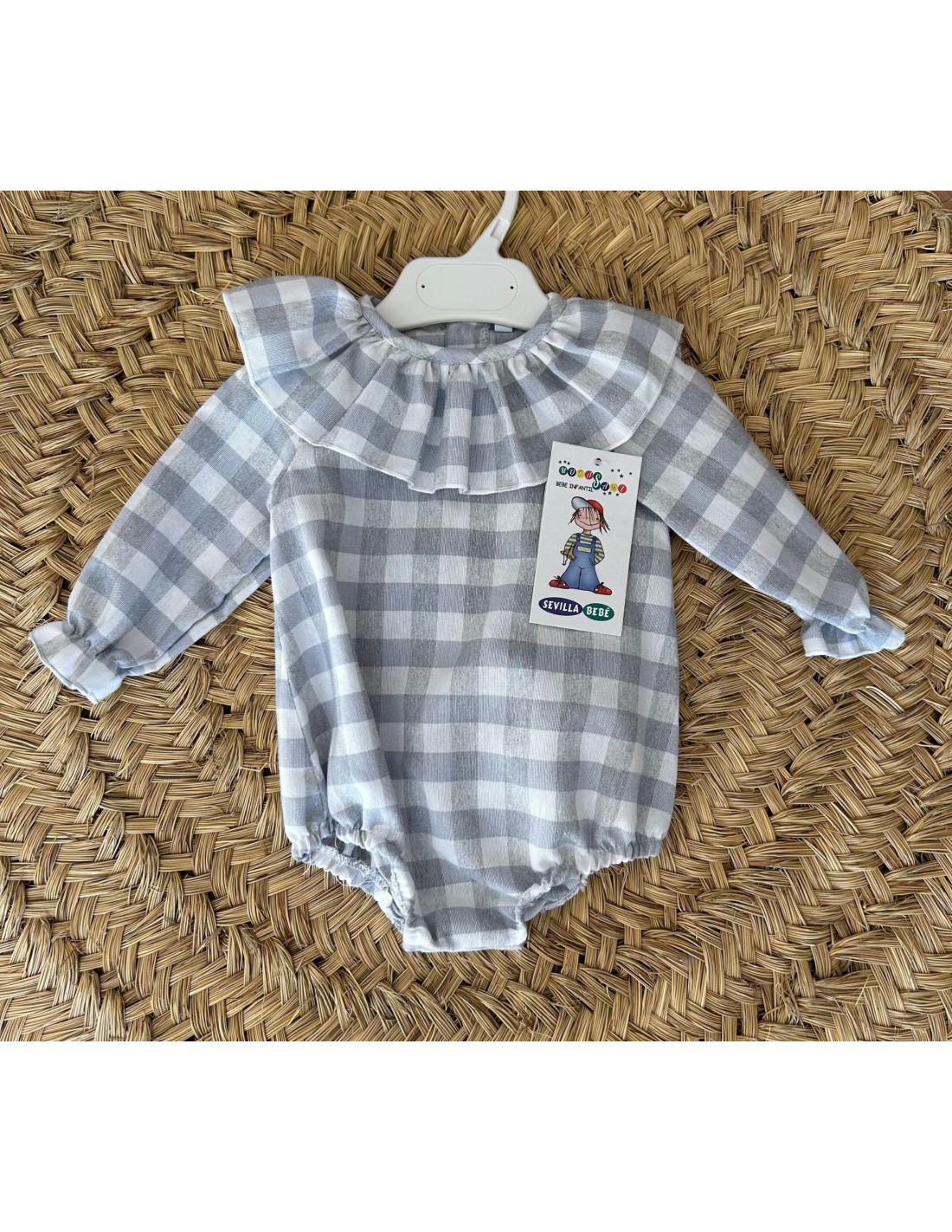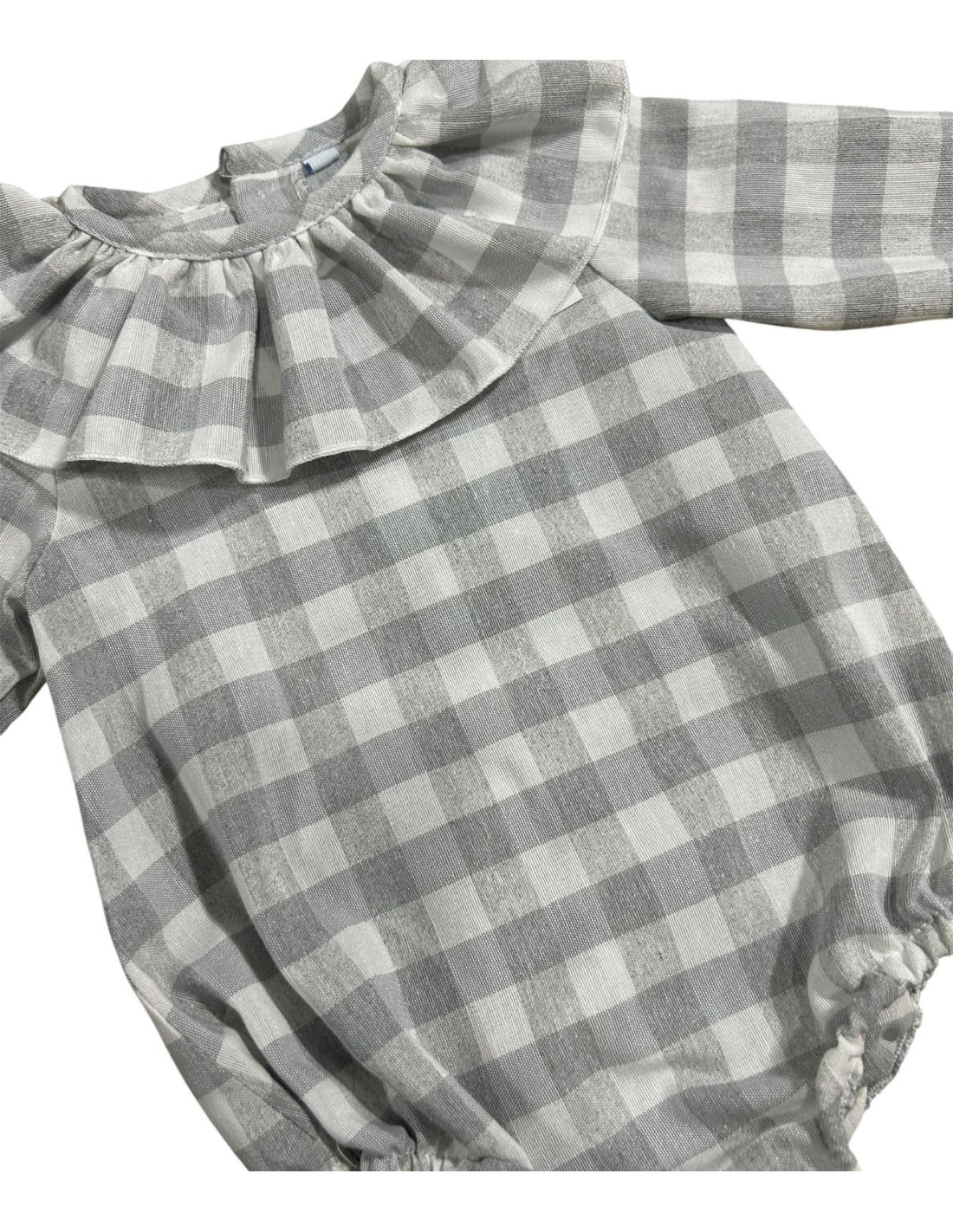 Pelele con maxi cuello en cuadro vichy en gris super ponible