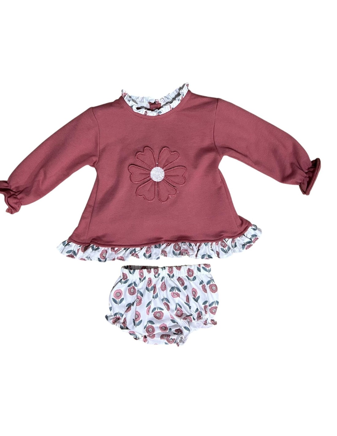 Conjunto de lana de merino de dos pieza con chaleco con cuello y ochitos en el pecho y ranita ( marca solita) 100% algodón
