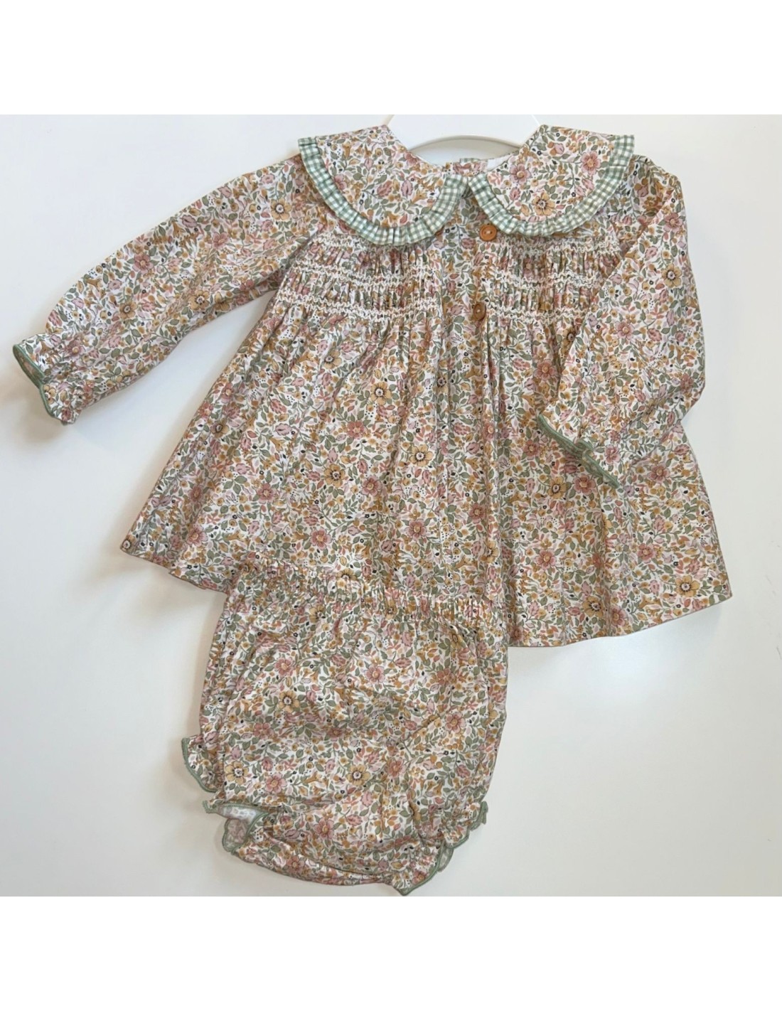 El vestido amarillo con braguitas es una opción alegre y encantadora, perfecta para que tu bebé luzca radiante y cómodo en cualquier ocasión.