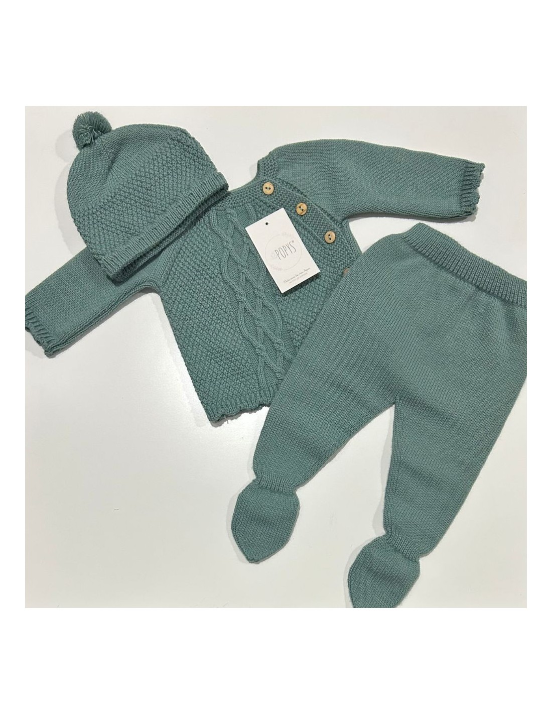Conjunto de sudadera camel con el detalle del volante en la manga y ranita de hojas ( marca popys)