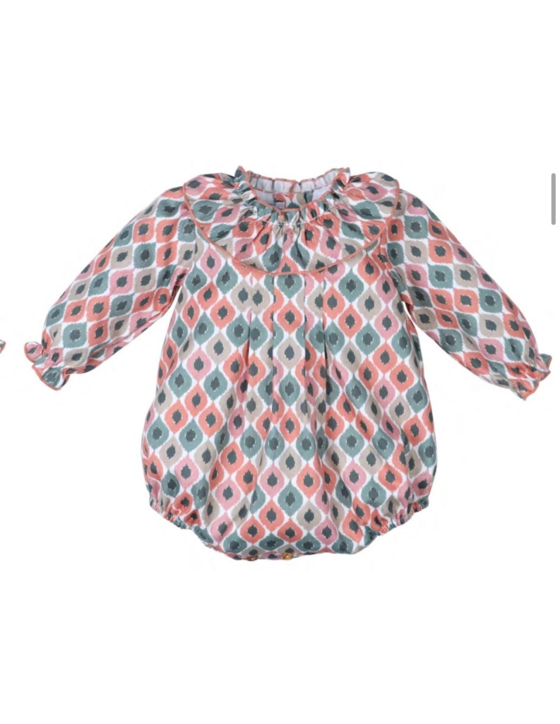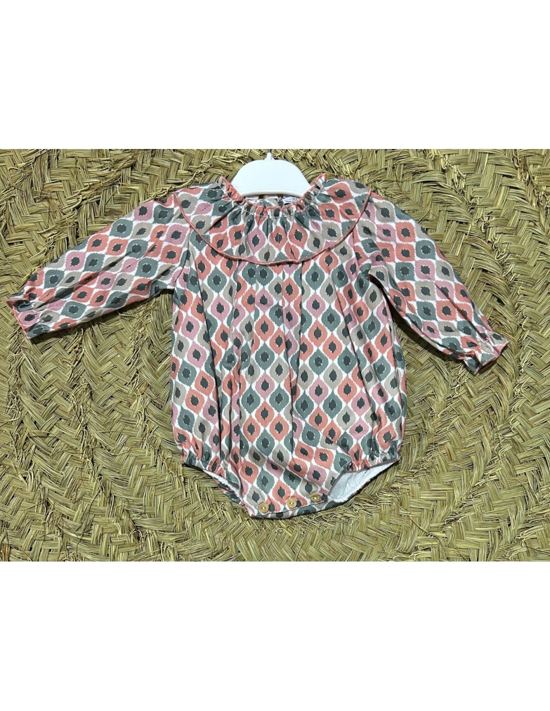 Pelele de bambula con maxi cuello y botones de madera en verde