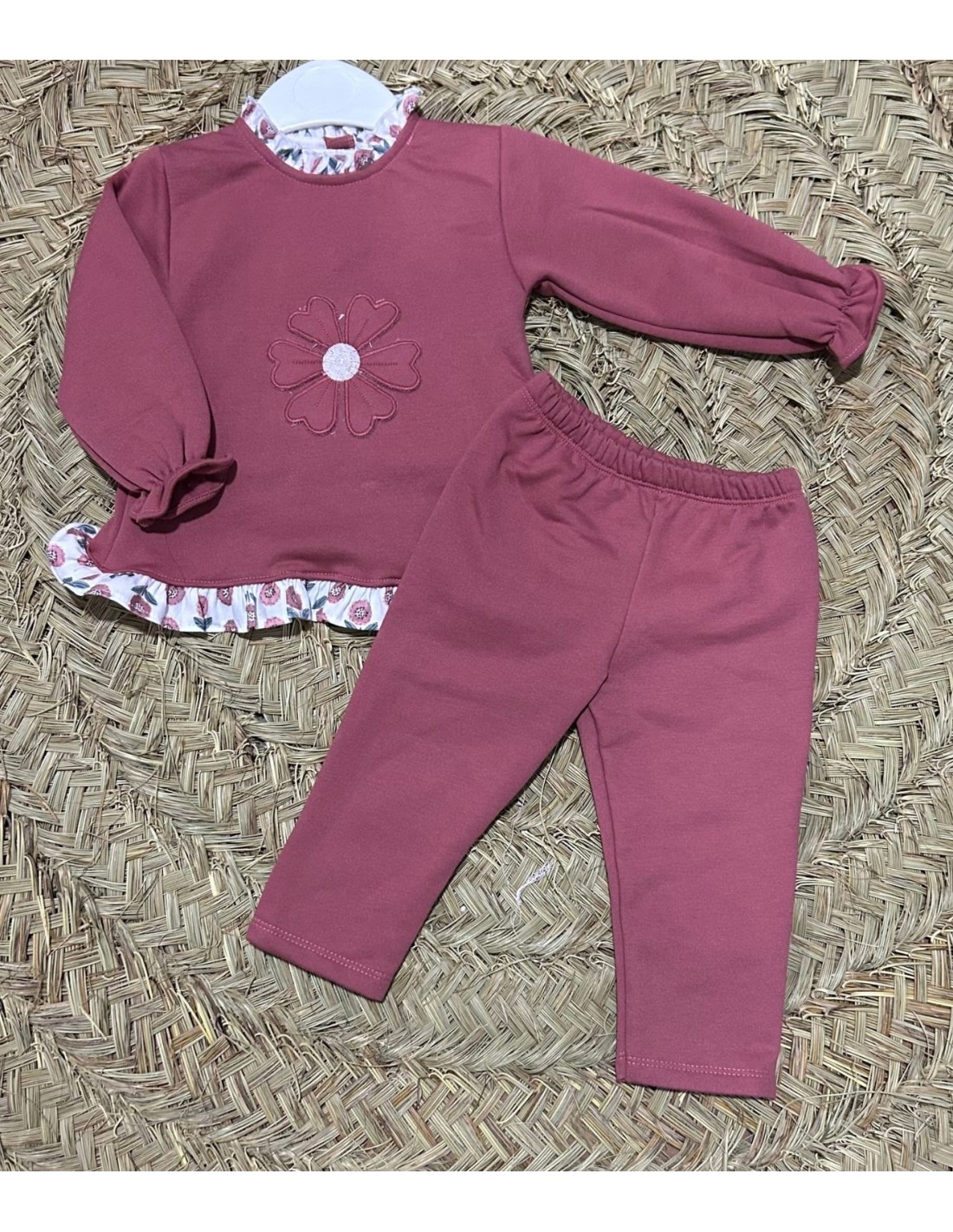 Sudadera con flor y apertura en la espalda y pantalón 100% algodón ( popys)