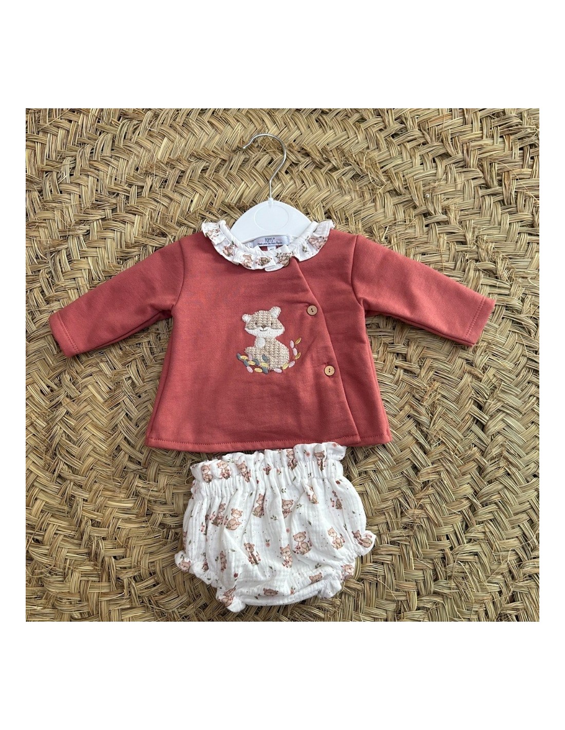 Pijama con gorro, chaleco cruzado y polaina primeras puestas 100% algodón ( popys)