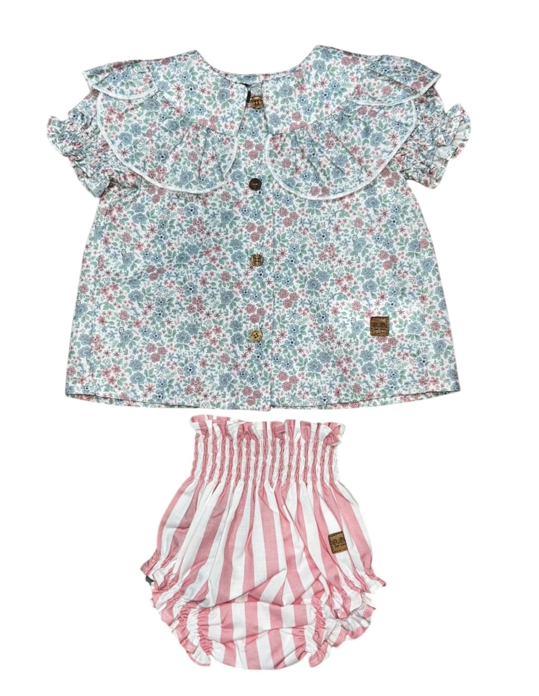 Conjunto de camisa de florecitas con Maxi cuello y ranita de rayitas en coral a juego con la camisa un conjunto ideal para cualquier evento (José varón)