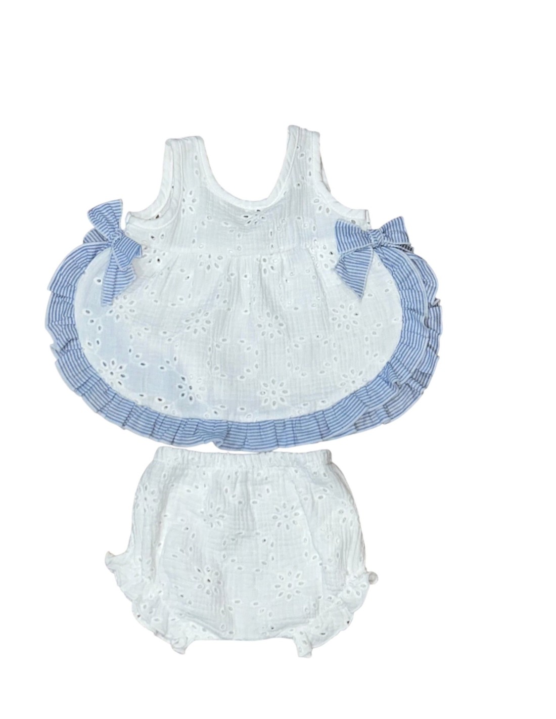 Jesusito en blanco perforado con el detalle de las rayas azul marino super cómodo (calamaro)
